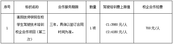 華新項目管理集團有限公司受衡陽技師學(xué)院的委托,對衡陽技師學(xué)院在校學(xué)生駕駛技術(shù)培訓(xùn)校企合作項目(第二次)進行院內(nèi)自主招標(biāo),邀請符合資質(zhì)條件的投標(biāo)人來參加投標(biāo)。