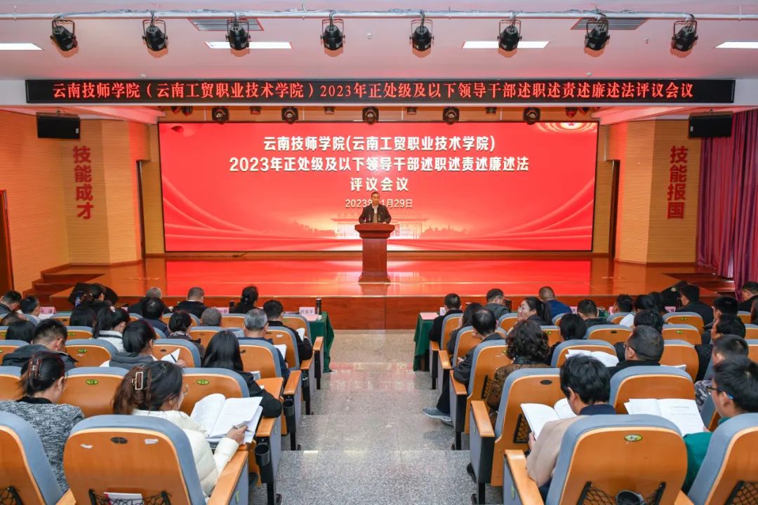 11月29日,學(xué)院2023年正處級及以下領(lǐng)導(dǎo)干部述職述責(zé)述廉述法評議會議在圖書館報告廳召開,學(xué)院黨委書記何良平主持會議,學(xué)院領(lǐng)導(dǎo)、全體中層干部、教職工代表共84名同志參加會議。
