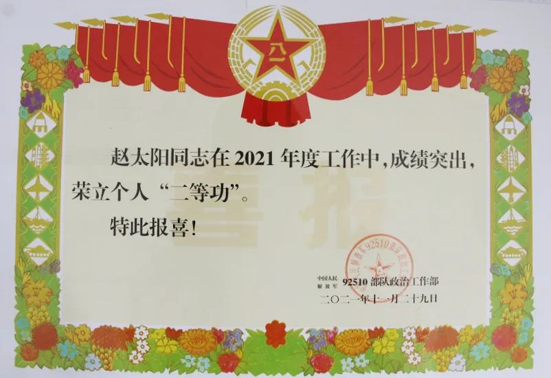 入伍后,該同志始終不忘初心,矢志強軍事業,把無限的熱情投入到訓練中,敢打敢拼、真打實練,是同年戰友眼中的“拼命郎”;下連后,能夠系統學習黨的理論,真學真信真用,立足本職練精兵,多次參加并出色完成各項大型任務,是連隊公認的“多面手”;擔任骨干后,更是精研帶兵之道,摸索訓練方法,是各級領導眼中的“兵教頭”;日常生活中,不怕苦不怕累,為人謙虛謹慎,樂于助人,是戰士心中的“老大哥”。2017年、2018年連續兩年被評為優秀義務兵, 2019年被評為優秀士官, 2021年被評為 “四有” 優秀士兵,2021年7月被表彰為“優秀共產黨員”,記二等功1次。