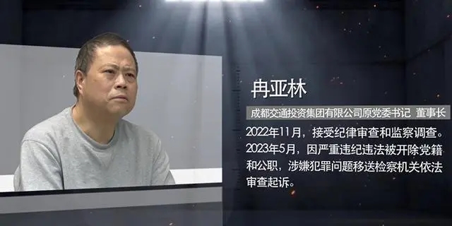 【解說詞】冉亞林,成都交通投資集團有限公司原黨委書記、董事長,2022年11月接受紀律審查和監察調查,2023年5月因嚴重違紀違法被開除黨籍和公職,涉嫌犯罪問題移送檢察機關依法審查起訴。
