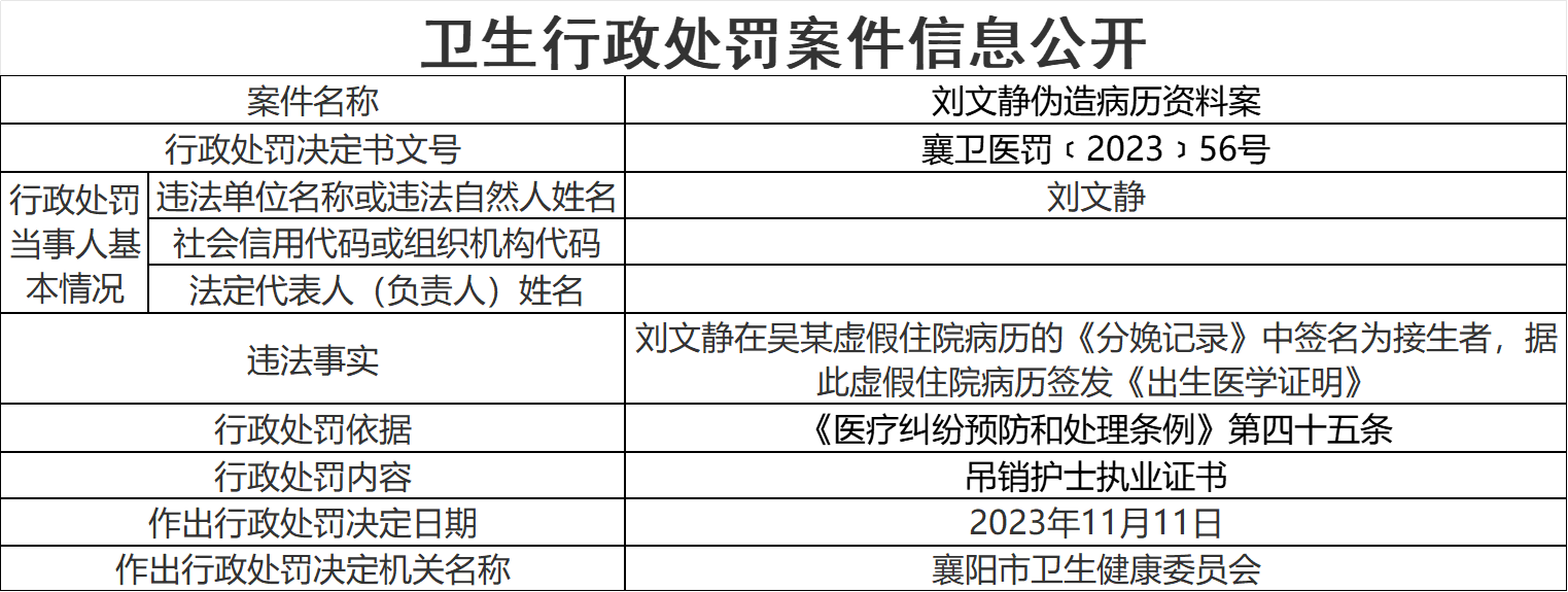 11月6日,網民舉報襄陽健橋醫院(襄城區陳侯巷169號,民營,法定代表人葉某芝,女,55歲)販賣出生醫學證明等問題后,襄陽市立即成立由市委、市政府主要領導任組長、相關市領導為各工作組負責人,市公安、衛健、紀檢監察等部門組成的工作專班,從嚴從快、依法依規開展問題調查、案件偵辦和追責問責等工作。