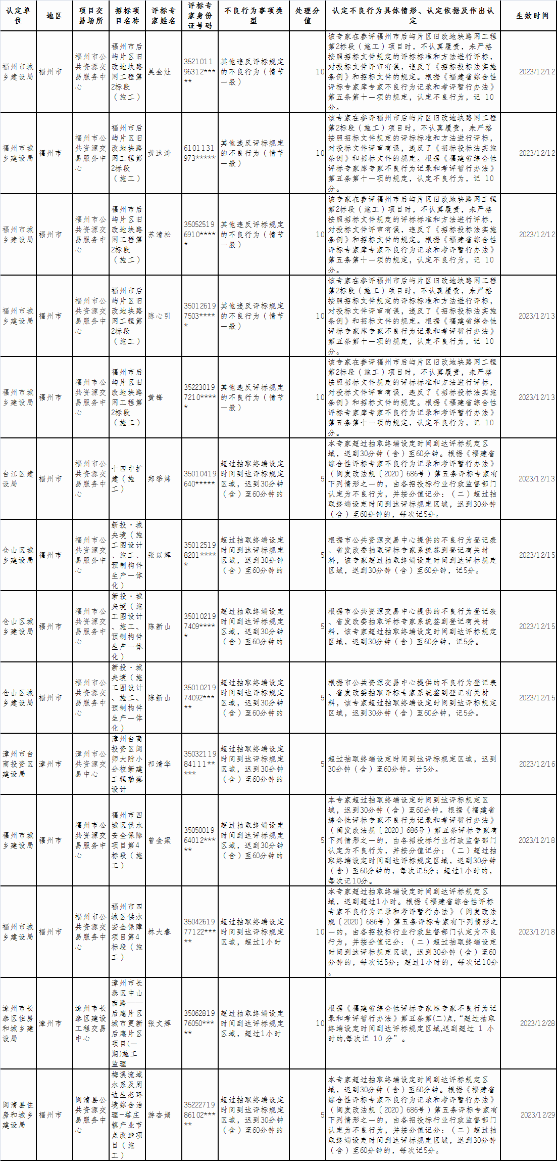 福建省評標(biāo)專家不良行為公示(2023年12月)