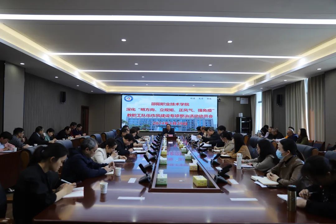 為深入學習貫徹習近平總書記關于黨的自我革命的重要思想,全面落實市委深化“明方向、立規矩、正風氣、強免疫干部隊伍作風建設專項整治活動”部署,推動我校專項整治活動走深走實。3月29日上午,學校黨委召開深化“明方向、立規矩、正風氣、強免疫”教職工隊伍作風建設專項整治活動動員會,全體在家校領導、中層正副職干部參加會議。