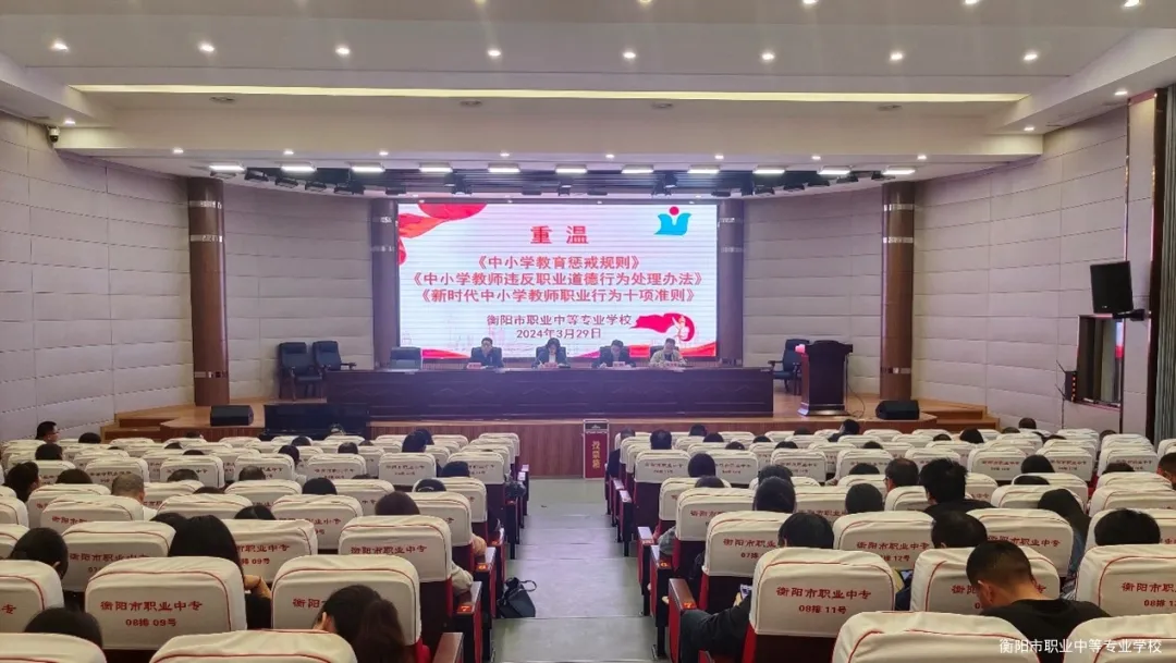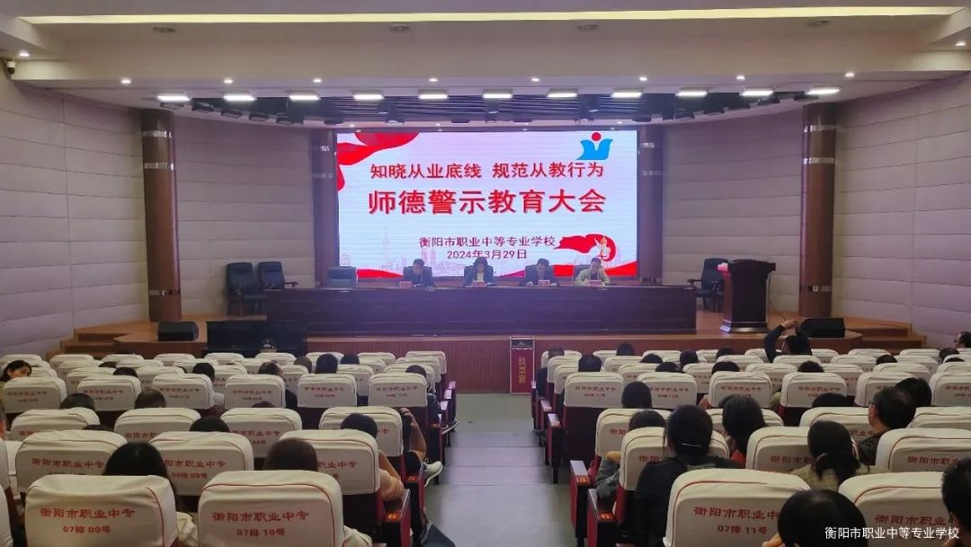為貫徹落實(shí)衡陽(yáng)市教育局《關(guān)于在全市教育系統(tǒng)組織召開全員師德警示教育的通知》精神,進(jìn)一步加強(qiáng)學(xué)校師德師風(fēng)建設(shè),提升教師的思想政治素質(zhì)和職業(yè)道德水平,3月29日下午,衡陽(yáng)市職業(yè)中等專業(yè)學(xué)校在多功能報(bào)告廳召開了“知曉從業(yè)底線 規(guī)范從教行為”師德警示教育大會(huì),會(huì)議由校長(zhǎng)鄒鵬主持,全體教職員工參加。