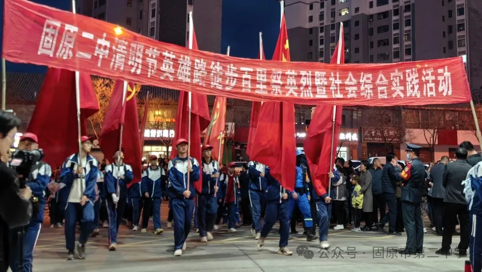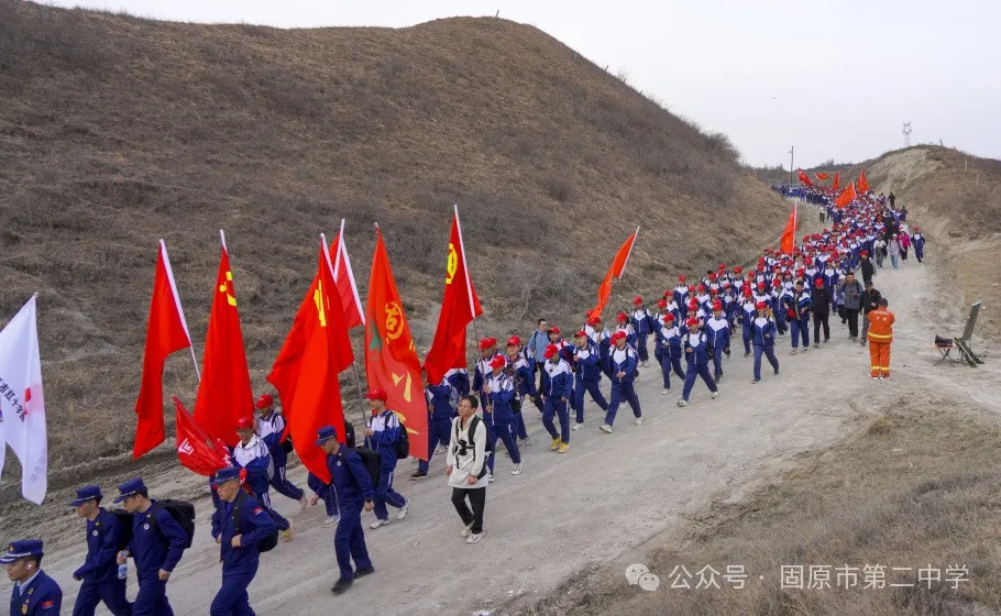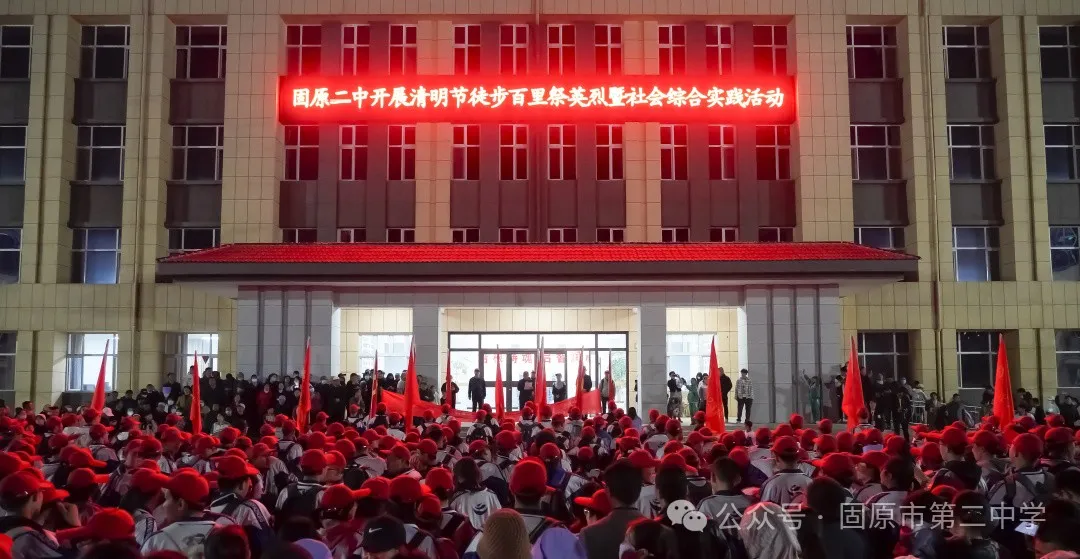 固原二中,坐落在六盤山下、清水河邊,背誦過偉人毛澤東的《清平樂·六盤山》,銘記著“不到長城非好漢”宏偉誓言。習近平總書記說過:“寧夏是一片有著光榮傳統的紅色土地……我們要銘記革命歷史,傳承革命傳統,并用以教育廣大干部群眾,教育一代又一代青少年”。二中人不忘立德樹人初心,充分利用紅色資源,走出一條紅色教育的長征路。 青山隱隱,松柏蒼蒼;歲歲清明,今又清明。莊嚴肅穆的任山河烈士陵園,高高聳立的烈士紀念碑,396名長眠烈士,此刻不會被忘記,也不會寂寞蕭索。2024年4月3日5:00,固原二中全體干部、高一年級共產黨員、共青團員、全體師生總計1100多人,赴一年一度清明之約,從固原二中出發,徒步前往彭陽任山河烈士陵園,追思緬懷,祭奠英靈,重溫歷史,接受洗禮。 英雄永垂不朽,精神長存人間。本次一同前往祭奠英烈隊伍中,有市團委、市消防救援支隊團委、市人民醫院團委、稅務局、六盤山水務局、自治區思政名師、中寧一中、固原博物館等單位人員。 獻花敬禮,緬懷不朽英明。每年此刻,披星出發、戴月而歸,爬坡過坎、步履鏗鏘,汗水淚水、攙扶前行,信仰力量、頑強拼搏,徒步往返任山河108里祭奠英烈。我們之所以一如既往地踏上這條路,追尋先烈精神,磨煉師生意志。是因為,先烈們為國家為民族,舍生忘死,昭于日月,垂于青史。他們是民族的脊梁、人民的英雄。是因為,百年來中國共產黨引領中華民族從站起來、富起來到強起來,迎來了偉大復興的歷史時刻,同時也將以更加昂揚的姿態屹立于世界民族之林。 出發前的準備 為了走好這堂富有特色的思政實踐課,學校未雨綢繆,早做籌備,才能保證各項工作順利開展。