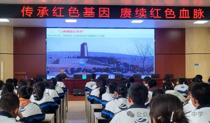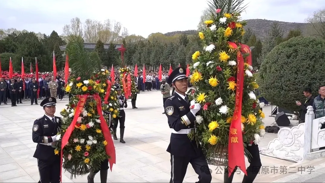 擂鼓出發 碧血丹心,照耀征途。隊伍行進在黃峁山通往任山河的蜿蜒崎嶇的砂礫路上,學生高舉紅旗,爬坡過坎、翻山越嶺。紅歌《強軍戰歌》《團結就是力量》此起彼伏、激昂雄壯、響徹山谷,激勵士氣。勵志的紅歌,在壯行任山河的路上,每一年、每一班、每個人,都不會忘,久久回響。 行經青石峽,翻越黃峁山,穿越東岳林場,到達古城鎮。 師生不甘落后,你追我趕,精神飽滿,行動迅疾。原本預定11:30到烈士陵園,結果卻提前了好幾十分鐘,讓師生有了充足的時間調理修整。 祭奠儀式 緬懷先烈憶初心,砥礪奮進續傳承。上午11:00,祭奠儀式開始。全體肅立,奏唱中華人民共和國國歌。向革命烈士默哀。 教師代表發言 學生代表發言 禮兵抬著花籃,依次拾級緩步走向革命烈士紀念碑 憑 吊 仰望紀念碑:革命烈士永垂不朽 多么遒勁有力,多么莊嚴肅穆 這是烈士戰斗過的地方,群山見證了舍生忘死 這是烈士長眠之處,松柏環繞萬古長青 默哀,鞠躬,豐碑巍巍 追思,緬懷,蒼天垂淚 擦拭墓碑,細讀碑文,字字千鈞 猶如烈士一路踩過的腳印,身后升起了泱泱中華氣節 呼嘯的子彈、奮勇的廝殺,都隨著烈士成了絕響 沿著紅色印記,后人把旗幟高高舉起 獻上一朵潔白小花,默默告慰先烈 這世間,已如你所愿