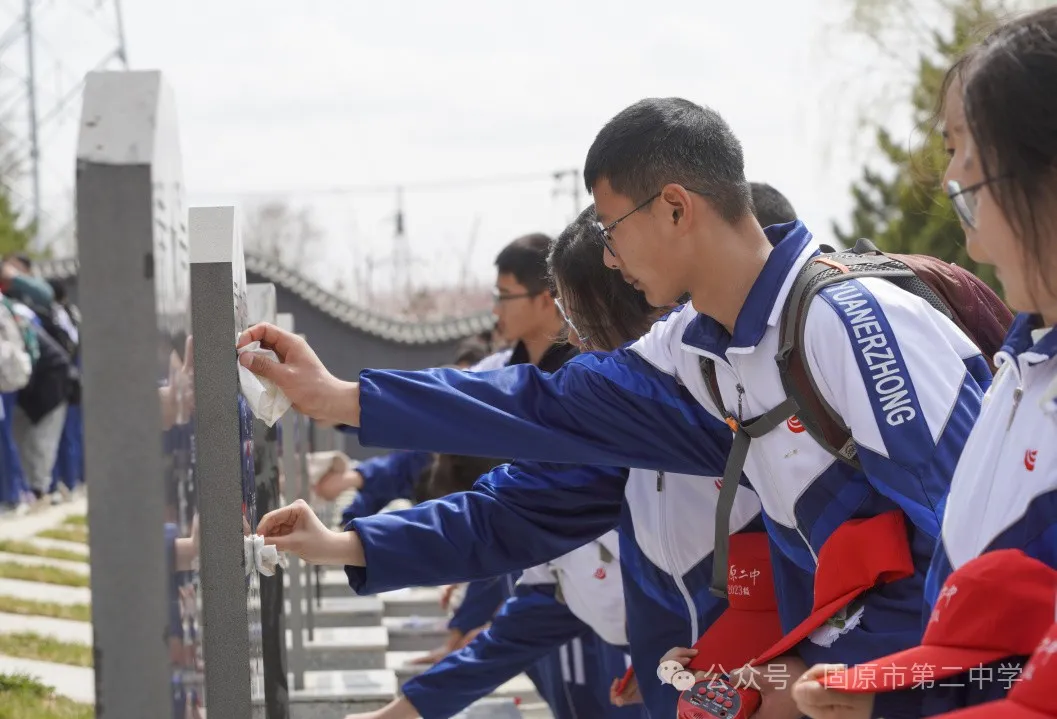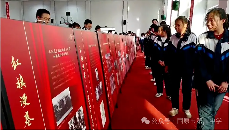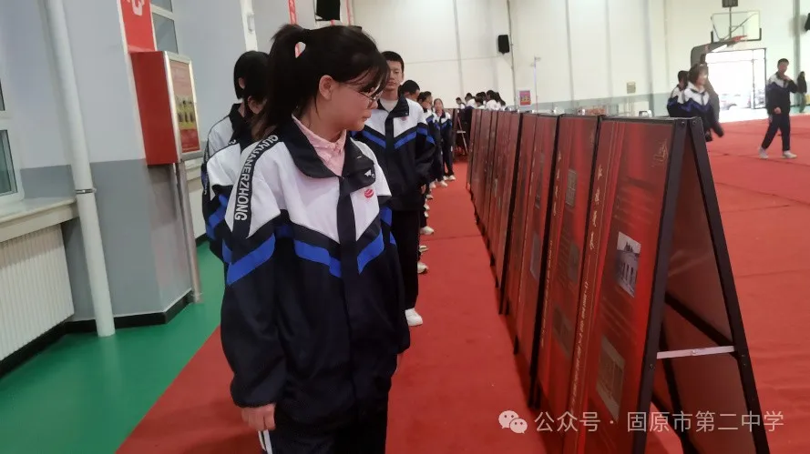 學生參觀革命文物陳列圖片展 出征 先烈遺愿志銘,革命精神志承。隊伍從固原二中校園出發,徒步去往任山河烈士陵園,往返路程共計108里。