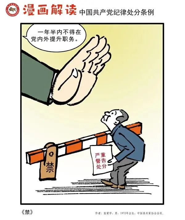 紀法鏈接:黨員受到警告處分一年內、受到嚴重警告處分一年半內,不得在黨內提拔職務或者進一步使用,也不得向黨外組織推薦擔任高于其原任職務的黨外職務或者進一步使用。