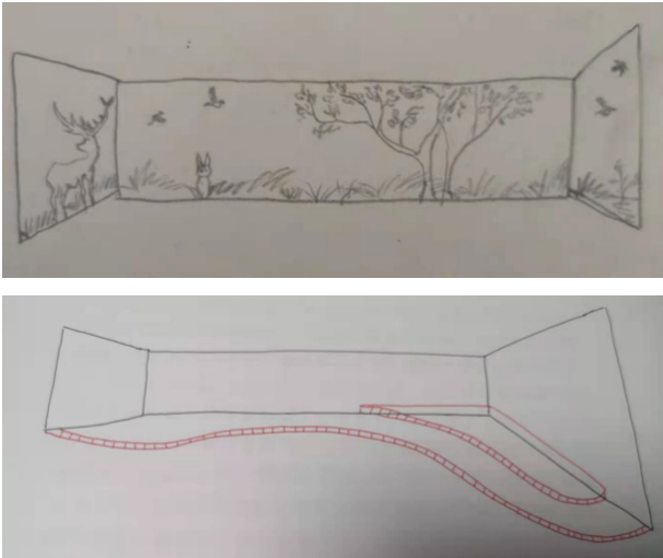 以及當(dāng)年我們因?yàn)橘Y金緊張,沒錢請(qǐng)?jiān)O(shè)計(jì)師,所以是我用鉛筆畫了一幅兒童區(qū)的草圖,畫得很丑,連透視法都是錯(cuò)的。大家看那個(gè)兔子,畫得好像狗一樣。我把這張圖也放了進(jìn)來。