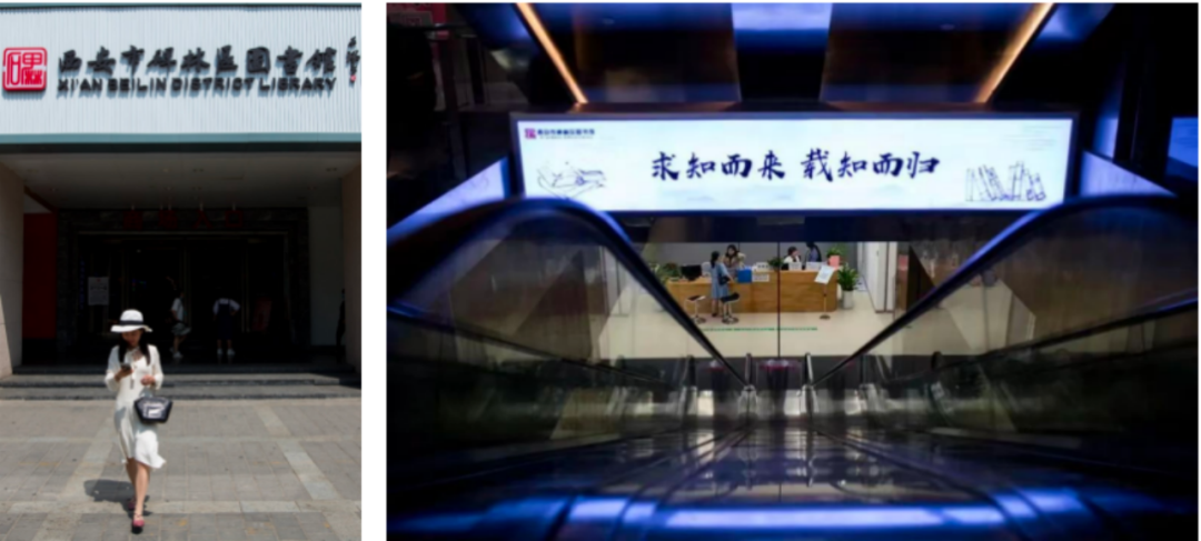 左邊是圖書館的門頭,大家可以看到,不太大。右邊是圖書館往地下走的扶梯。大家可能會(huì)納悶,圖書館怎么會(huì)建在地下呢?當(dāng)初接到這個(gè)任務(wù)的時(shí)候,我也很納悶。