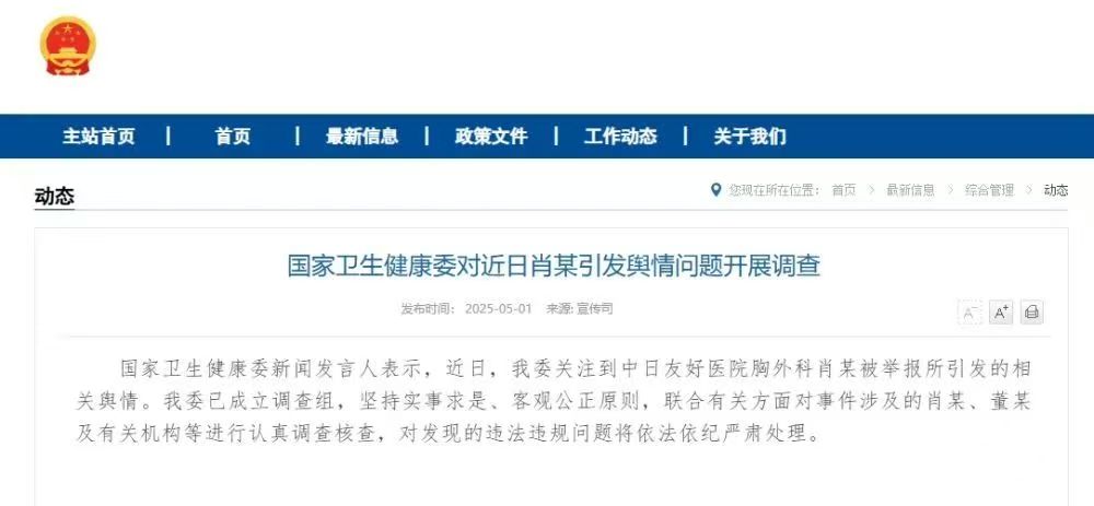 近日,中日友好醫(yī)院胸外科肖某被其妻子舉報違反生活紀律、醫(yī)德醫(yī)風等問題,引發(fā)社會關注。國家衛(wèi)生健康委迅速成立調查組,派出工作組進駐涉事單位,會同有關方面,對肖某執(zhí)業(yè)行為、醫(yī)德醫(yī)風,董某瑩的入學資格、學習情況、學術論文、畢業(yè)論文、入職過程、住院醫(yī)師規(guī)范化培訓管理等各環(huán)節(jié)進行徹查,對有關問題及所涉單位、部門和人員進行調查。現將調查處置進展情況通報如下。