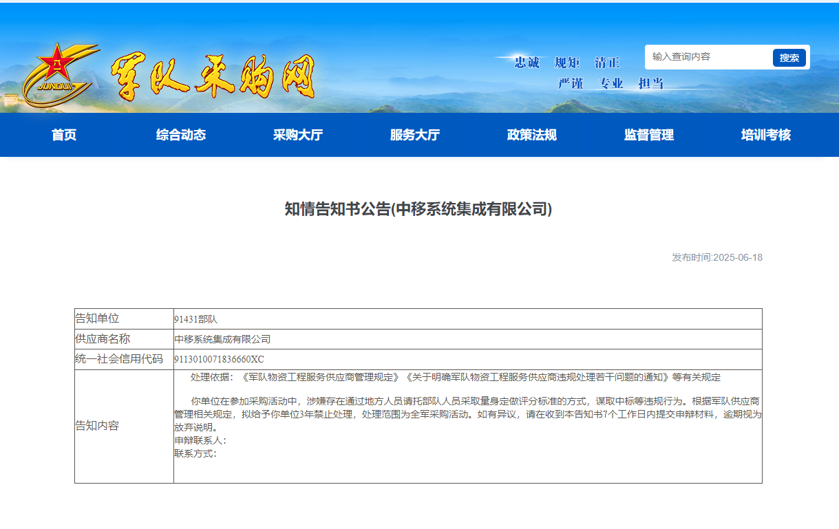 為自己“定制招標(biāo)” 央企子公司被軍隊采購“拉黑”三年