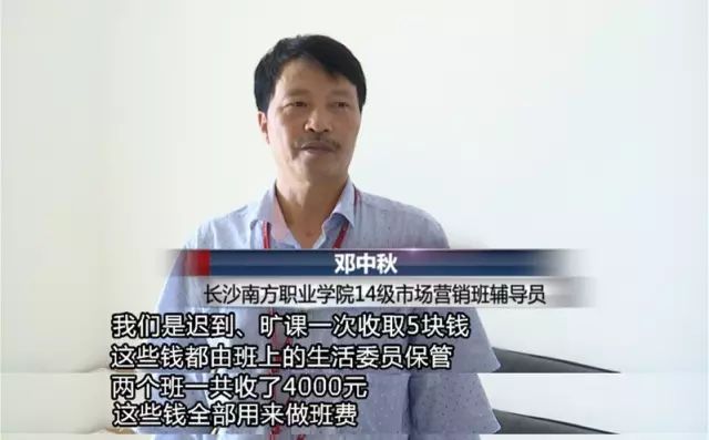 2016年上學期,鄧中秋針對其所帶的班級學生到課率低問題,制定“曠課罰款”的班規,將罰款充作班費。截至2016年9月,共收取13名學生罰款費6300元。鄧中秋受到行政記過處分,并全額清退學生罰款。
