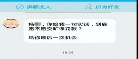 學生們向記者提供了多張2014級市場營銷二班的班級QQ群對話截圖。其中一位名為“鄧老師”的群成員在群內發布了消息,要求學生在9月3日到4日期間,除了繳納新學費的學費,還必須“向生活委員繳納上學期的違紀罰款”,否則不予注冊。此外,這位鄧老師還指名道姓向楊某催繳罰款。