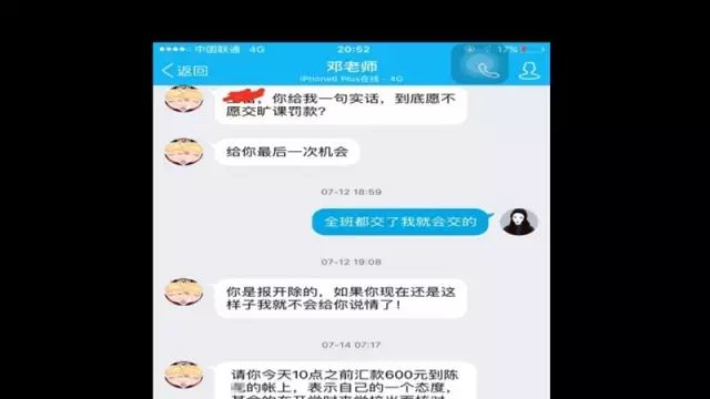 記者從學生們口中得知,向學生收罰款的是長沙南方職業學院2014級市場營銷班輔導員鄧中秋,班級QQ群中名為“鄧老師”的人正是他。對于學生們的質疑,這位鄧老師是這么說的。