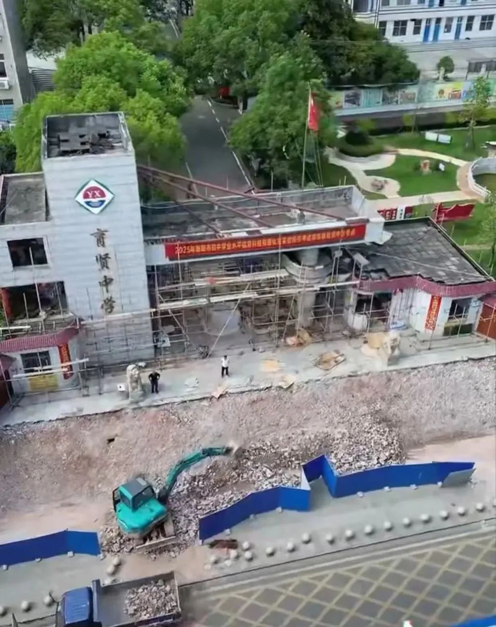 正在修繕中的育賢中學校門 圖片來源:澎湃新聞