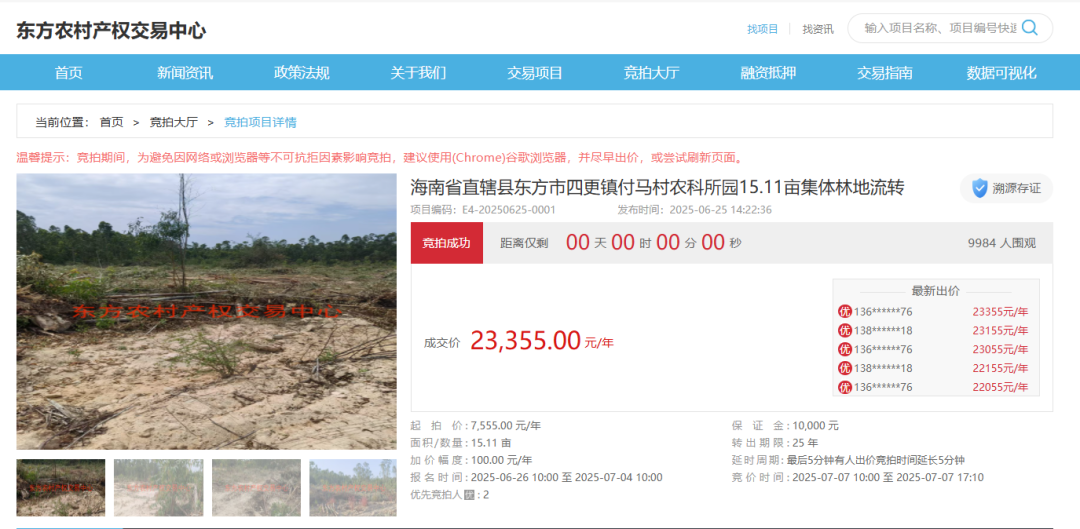 為解決傳統土地流轉“多頭跑、反復跑”的難題,市農業農村局以“機器管三資”為核心,構建起農村集體“三資”監管長效機制,依托數字化監管平臺,不僅實現土地流轉規范化、透明化,還借助大數據分析為村集體提供資源盤活建議,在產業布局規劃、招商引資等方面提供精準化服務。通過制定詳細交易規則和流程,依托信息化平臺實現項目信息發布、報名競價、結果公示全流程線上操作;同時整合土地流轉意向確認、合同規范簽訂、權屬變更登記、融資需求對接等環節,打造“一站式”服務體系,真正做到讓群眾“只進一扇門、最多跑一次”。截至目前,東方農村產權交易中心已累計成交77宗項目,交易額達3.05億元,累計為村集體增收超5000萬元,顯著提升了農村集體資產的價值;已高效核發土地經營權不動產權證書25本,為土地流轉提供了法律保障;同時土地經營權抵押貸款授信超1470萬元,有效緩解了農村“融資難”的問題。