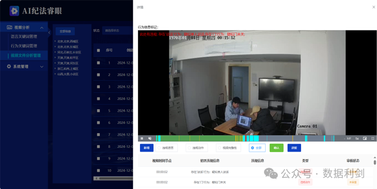 結合Ai語音等本地化部署的輕量級大模型,建設AI紀法睿眼系統,用于輔助工作人員對談話和留置看護的監督視頻內容進行全面解析、研判,確保工作的依法合規。