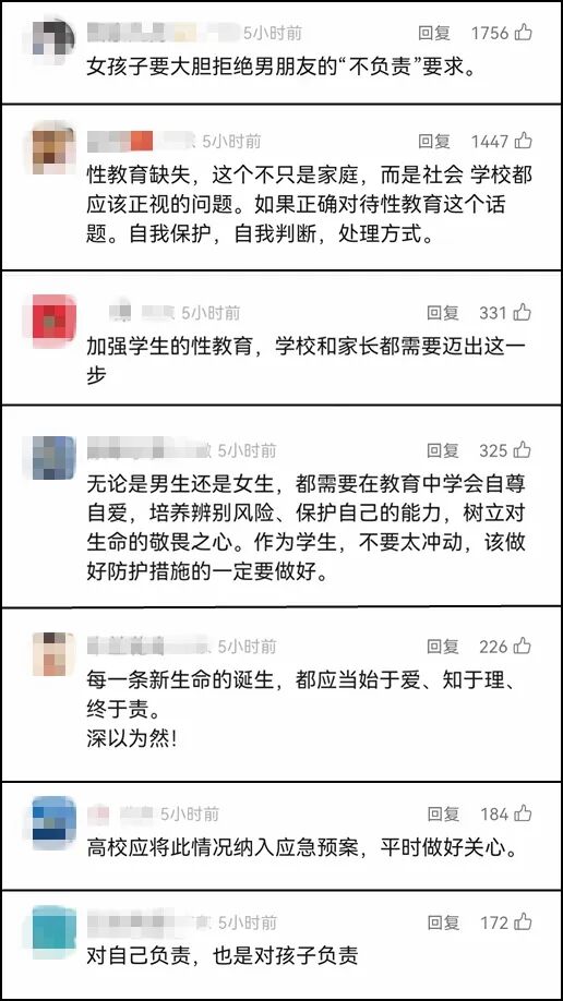對此,網友們表示,“加強學生的性教育,學校和家長都需要邁出這一步”、“樹立對生命的敬畏之心”、“每一條新生命的誕生,都應當始于愛、知于理、終于責?!?/span>