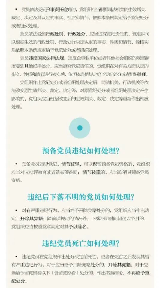 第三十六條 違紀黨員在黨組織作出處分決定前死亡,或者在死亡之后發現其曾有嚴重違紀行為,對于應當給予開除黨籍處分的,開除其黨籍;對于應當給予留黨察看以下(含留黨察看)處分的,作出違犯黨紀的書面結論和相應處理。