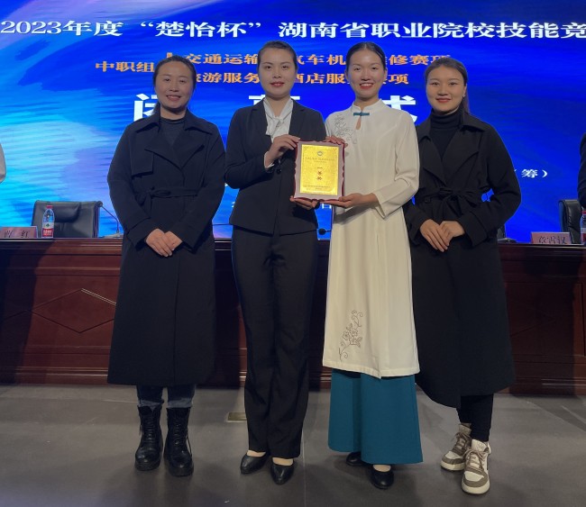 3月2日,從常德財經機電職業技術學院賽點傳來喜訊,經貿旅游學院周露、祝超團隊(指導教師:李艷、譚玉林)憑借高超的技能水平和過硬的心理素質,經過激烈比拼,從全省各職業院校54個代表隊108位參賽選手中脫穎而出,獲酒店服務賽項一等獎。