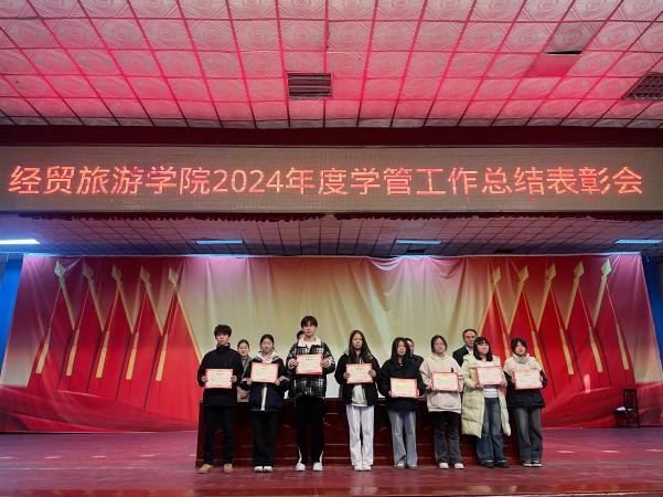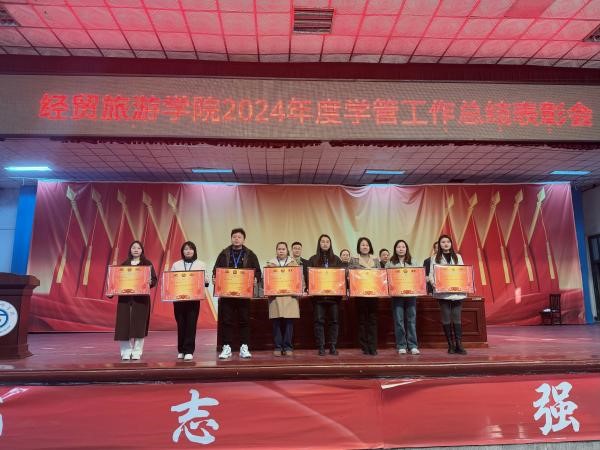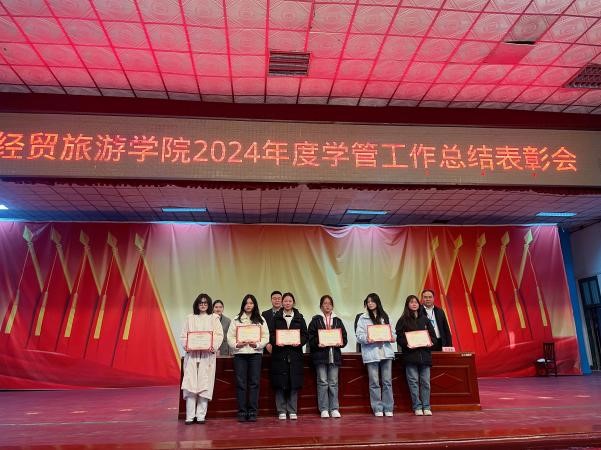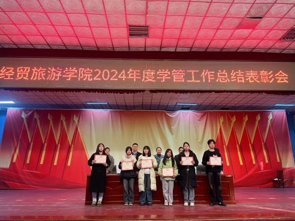2025年1月4日,經貿旅游學院2024年度學管工作總結表彰會在學校大禮堂隆重舉行。會議由經貿旅游學院黨總支專職副書記唐佳潔主持,經貿旅游學院領導、學管人員、班主任、獲獎學生和班級學生代表參加會議。