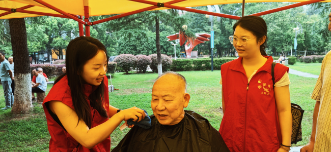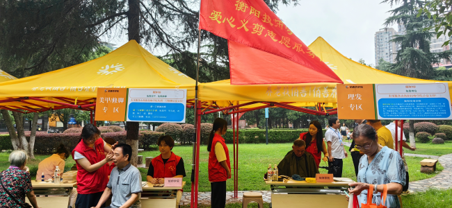 為弘揚(yáng)敬老愛老傳統(tǒng)美德,深化黨員志愿服務(wù)內(nèi)涵,6月23日,經(jīng)貿(mào)旅游學(xué)院聯(lián)合衡陽市佰善養(yǎng)護(hù)院,在社區(qū)養(yǎng)老服務(wù)中心共同開展“情暖社區(qū) 愛駐夕陽”便民服務(wù)公益活動(dòng)。學(xué)院院長(zhǎng)龐海英同志,黨總支書記朱清如同志帶頭,組織志愿者團(tuán)隊(duì)為社區(qū)老年居民提供愛心義剪、修甲等貼心服務(wù),用實(shí)際行動(dòng)傳遞溫暖。