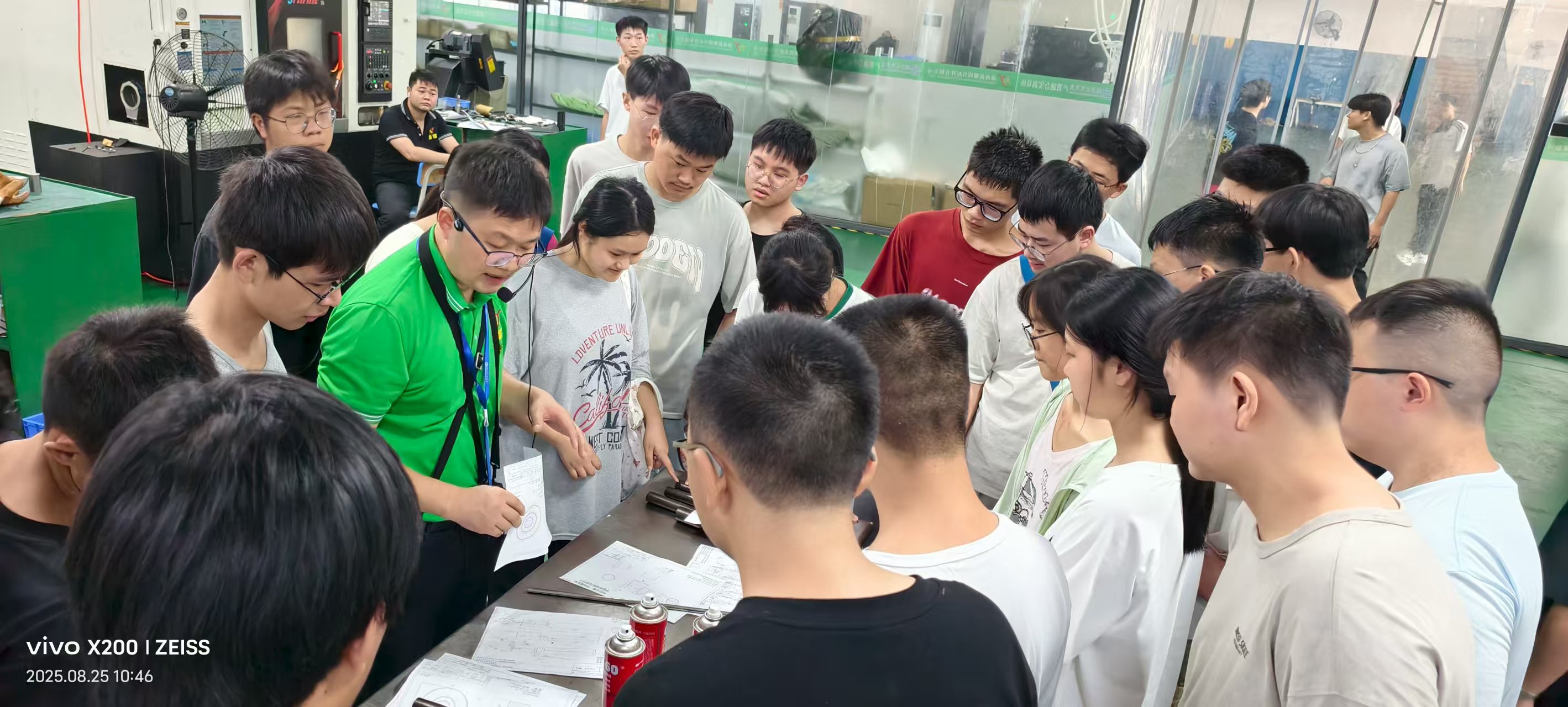 陳桂奇老師講解產教融合實訓基地模具生產圖紙