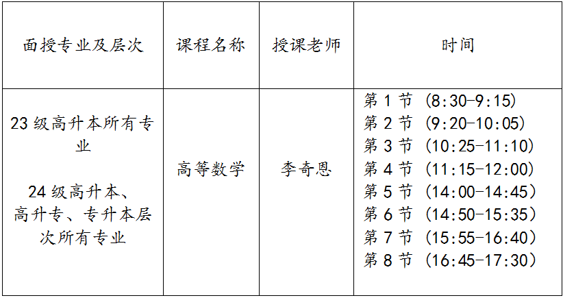 2、本周日(11月17日)進行2023級高升本層次、2024級所有層次所有專業線下直播課,具體安排如下: