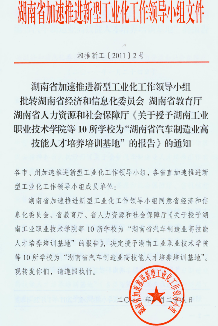 湖南省汽車制造業(yè)高技能人才培養(yǎng)培訓(xùn)基地
