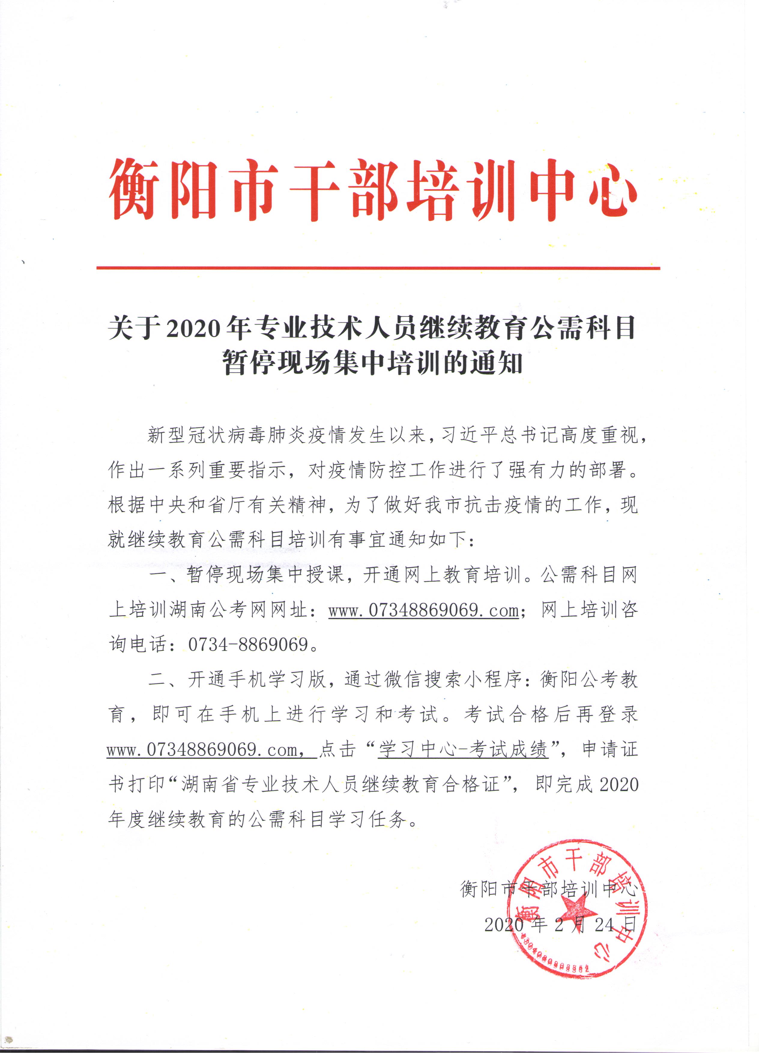 關于2020年專業技術人員繼續教育公需科目暫?,F場集中培訓的通知