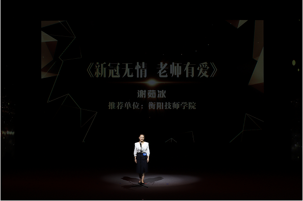 謝茹冰用真摯的情感、自然樸實(shí)流暢的語(yǔ)言講述了我院陳媛媛老師的抗疫故事。“戰(zhàn)勝新冠病毒,這是一場(chǎng)沒有硝煙的戰(zhàn)役,在這場(chǎng)戰(zhàn)役中,我們學(xué)院還有許許多多像媛媛一樣全力抗疫、無怨無悔的老師,他們是無私奉獻(xiàn)、參加抗疫志愿服務(wù)的“最美衡陽(yáng)群眾”謝東升;退伍不褪色、沖鋒在抗疫前線的共產(chǎn)黨員唐濤;心系鄉(xiāng)親、為村民排憂解難的志愿者劉海斌...我們同樣是勇敢的戰(zhàn)士,用我們的忠誠(chéng)鑄造師魂,用我們的生命哺育大國(guó)工匠、民族未來。”謝茹冰的精彩宣講激起了聽眾的強(qiáng)烈共鳴!