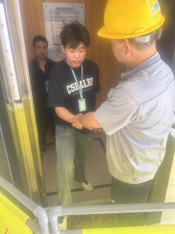電梯平層后,救援人員用三角鑰匙打開電梯門,將被困人員安全救出,此時(shí)被困人員情緒穩(wěn)定,未出現(xiàn)異常。