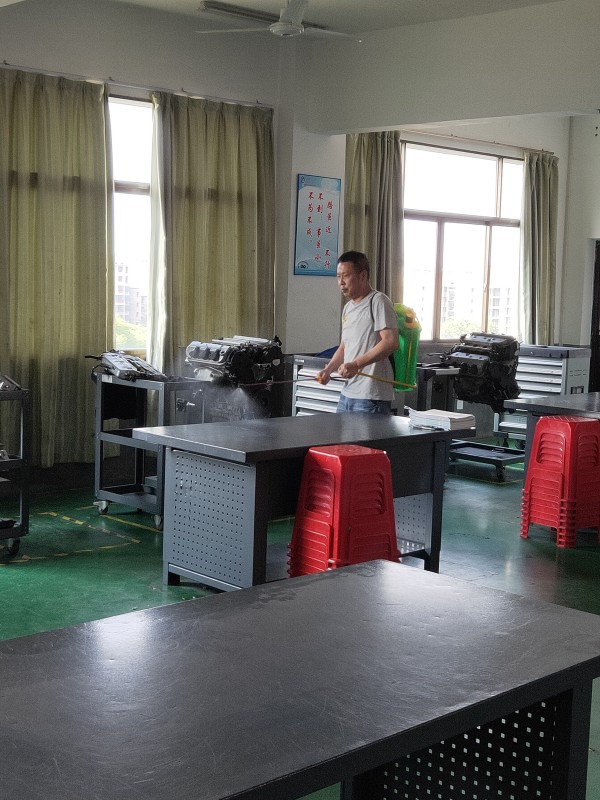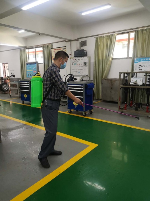 為貫徹落實(shí)學(xué)院開學(xué)疫情防控方案,順利開展實(shí)訓(xùn)教學(xué),實(shí)訓(xùn)中心明確要求所有工作人員,繃緊疫情防控這根弦,夯實(shí)各自的工作職責(zé),慎終如始的把工作抓嚴(yán)做實(shí)做好。每天對所有實(shí)訓(xùn)場地消毒兩次,管理員親力親為,按時(shí)消殺。圖為各實(shí)訓(xùn)工場管理員每天分中午、下午兩個(gè)時(shí)段在做實(shí)訓(xùn)場地、設(shè)備的消毒工作。