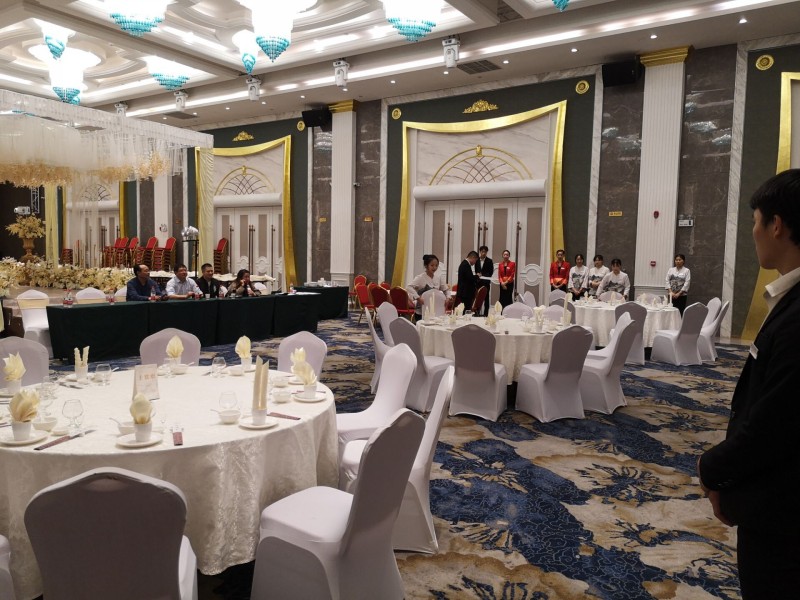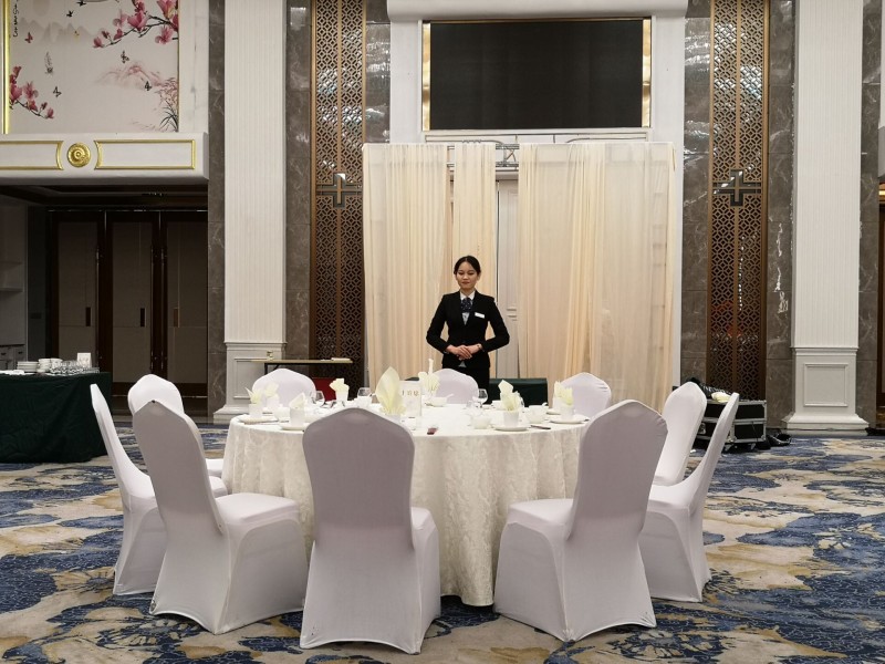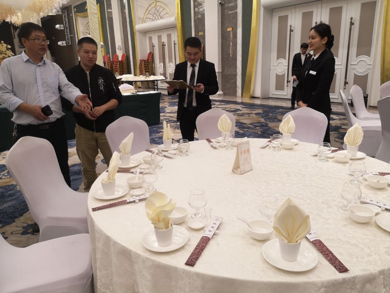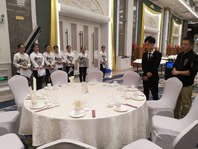 11月19日上午,實訓(xùn)中心和經(jīng)貿(mào)系對在旺鳴軒酒店國宴廳實訓(xùn)的經(jīng)貿(mào)系18級旅酒管理高技班學(xué)生進行中餐宴會擺臺實訓(xùn)技能抽考。抽考學(xué)生能在規(guī)定時間內(nèi)完成擺臺內(nèi)容,做到姿態(tài)優(yōu)美,操作衛(wèi)生,動作嫻熟,擺放標(biāo)準(zhǔn)。