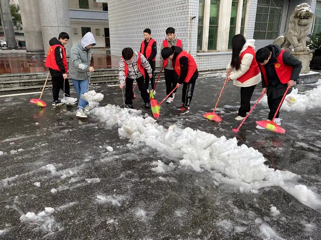 為響應衡陽團市委的號召,2月23日,學院團委組織學院青年志愿者開展校園除雪活動,各系青年志愿者一起聯合行動,清除學院道路、樓道積雪,保證學院廣大師生的出行安全。院團委教師、各系團總支參加本次志愿活動。