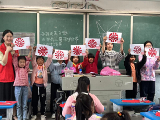 抵達教室,支教老師羅輝云書記組織學生們一起剪紙,她一邊講解一邊示范,一會兒剪出一個簡單而精美的圖案,然后再稍微剪一下,又變換成另外一個圖案,孩子們不時發出驚嘆聲,對剪紙的興趣和熱情一下被激發出來,紛紛拿起自己手中的剪刀和彩紙。孩子們完全投入到剪紙過程中,聚精會神地完成自己的作品,快樂流于指間。通過這種寓教于樂的形式,讓學生置身于青山綠野之中,在和煦明媚、芳草如茵、鳥鳴雀躍的夏日中,開闊心胸、陶冶情操,增長見識的同時,又引導了孩子好好學習,掌握本領,為建設社會主義強國貢獻力量。