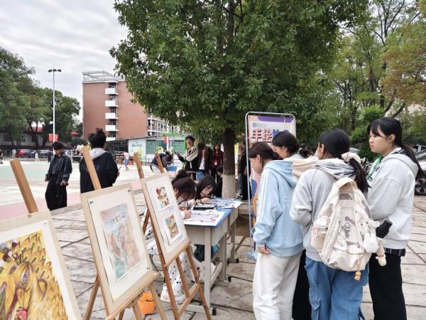 2025年11月6日,衡陽技師學院三教前籃球場上色彩斑嫻,手繪協會在此開展社團文化展示活動,以畫筆為媒,向師生們呈現了一場創意與美學交織的視覺盛宴。