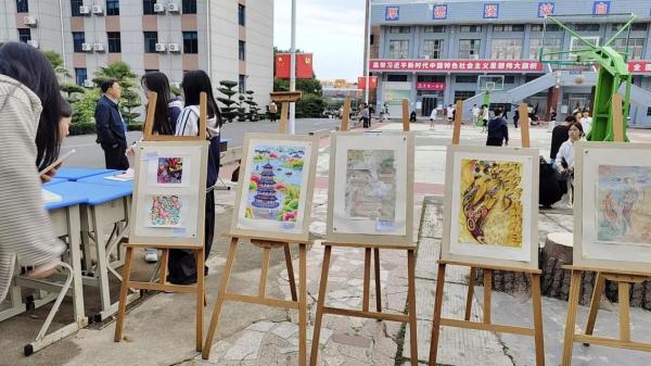 活動現場,協會展出了多幅成員優秀手繪作品:既有融合古風意境的《鶴之圖》,也有展現湖湘風貌的《西湖春早》,還有以“餃子”“海鮮”為主題的趣味插畫,作品風格涵蓋國風、卡通、創意設計等,細膩的筆觸與鮮明的色彩吸引不少師生駐足欣賞。