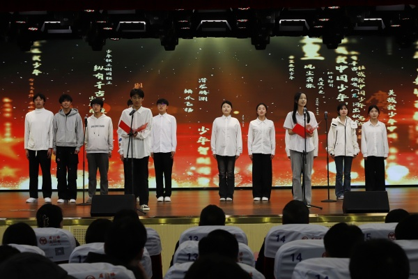 學生代表齊聲朗誦《少年中國說》(配圖)