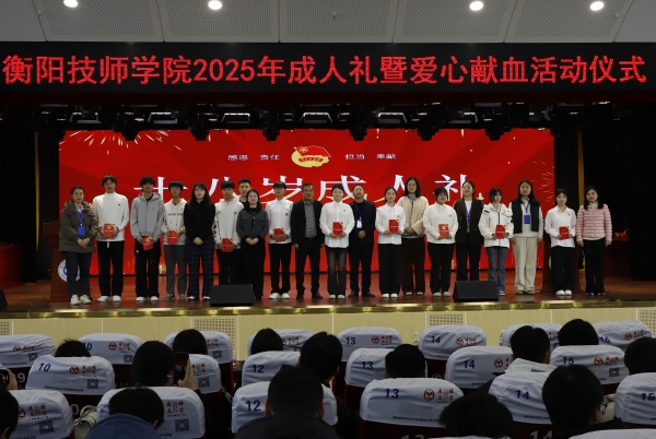 十八而志,踐行青春誓言;不負韶華,立志揚帆遠航。12月10日下午,衡陽技師學院“感恩·責任·擔當·奉獻”成人禮暨愛心獻血儀式在學院公共實訓基地11樓報告廳隆重舉行。學院領導陳石義、團委書記劉璐及各二級學院團總支書記、十八歲青年學子及家長代表共300余人共同見證這一意義非凡的時刻。