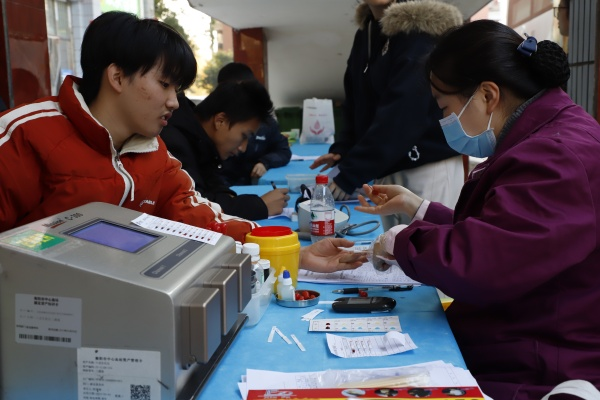 隨后,成年學子們邁過成人門,在黨員教職工的帶領下積極參與愛心獻血活動。