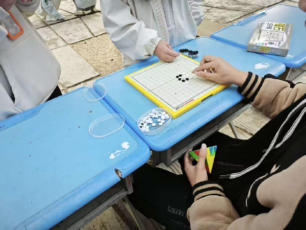 在五子棋對弈區,同學們兩兩對坐,凝神思索、落子從容,在黑白棋子的交錯間展現邏輯思辨能力;在多邊形魔方展示區,社員們指尖翻飛,將打亂的魔方快速復原,精準的手法和嫻熟的技巧引得現場贊嘆聲不斷,充分展現了益智項目的獨特魅力。