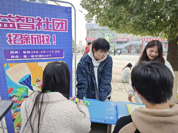 12月18日下午,學院三教籃球場前暖意融融,益智社團帶來的益智項目吸引了師生駐足圍觀、交流體驗。