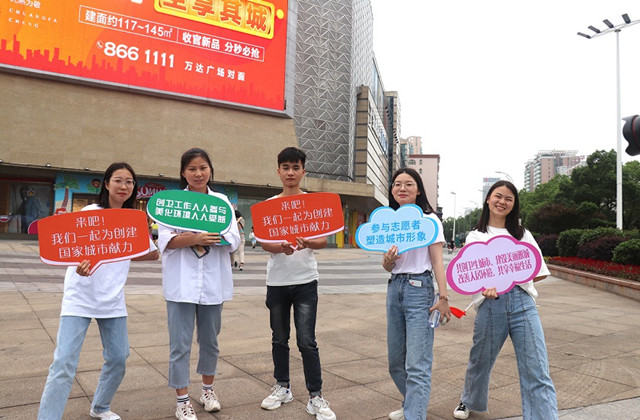 青年志愿者沿街宣傳創(chuàng)衛(wèi)