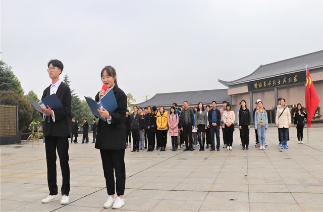 “我們將繼承烈士們的遺志,人民為先,祖國至上,發揚勇往直前,無堅不摧的革命精神……”全體師生面向抗戰紀念碑,莊嚴宣誓。