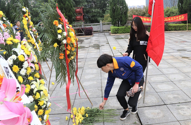 紀念,是為了更好的前行。優秀學生代表賓聰深有感觸,“我們今天美好的生活都是英烈用寶貴的生命換來的,我們沒有理由不加倍珍惜。只有我們更加發奮學習,將來努力工作,為祖國、為新時代、為偉大事業奉獻才智與汗水,才不會讓烈士們失望……”