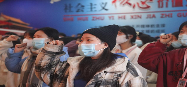 在活動的最高潮全體同學齊聲朗誦《請黨放心,強國有我》,并在學生代表的帶領下面向國旗,舉起右手,莊嚴宣誓,爭做有理想、有本領、有擔當?shù)暮们嗄辍?/p>