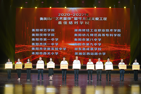 6月1日,2023年衡陽市“慶六一”暨“藝術童伴”留守兒童關愛工程主題展演活動在市文化藝術中心舉行。學院榮獲2020-2022年衡陽市“藝術童伴”留守兒童關愛工程“最佳結對學校”稱號。