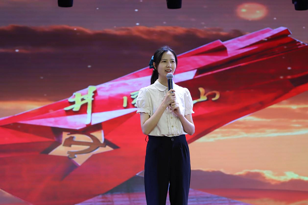 “羅亮泗主動請纓,抱著兩根聯裝的爆破筒,躍出戰壕、匍匐爬向了敵軍坦克……”“爆炸英雄”羅亮泗的革命事跡感動了全場的觀眾,羅亮泗的外孫女王亞琴作為特邀嘉賓來到活動現場。“我身上傳承著紅色基因,身體里流著英雄的血脈,我時刻牢記著傳承紅色精神的責任,講好英雄故事,讓羅亮泗精神永流傳……”,這是王亞琴在得知自己外公的英勇事跡后,舍棄高薪工作,毅然選擇了做一名講解員在戰斗英雄羅亮泗陳列館工作。活動現場,王亞琴深情地寄語同學們能從革命先烈精神中汲取力量,奮發圖強,做一個對國家、對社會有用的人。